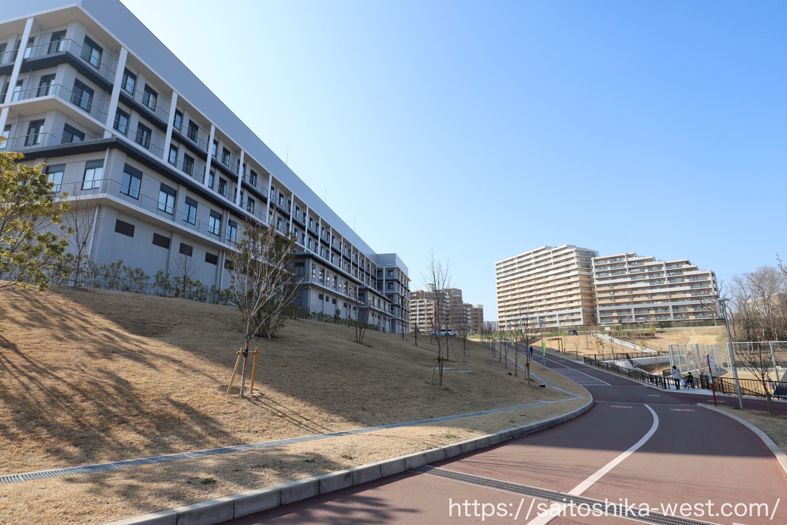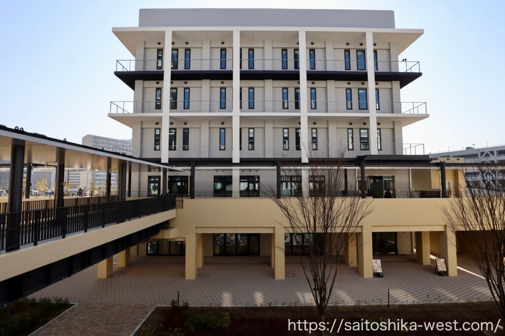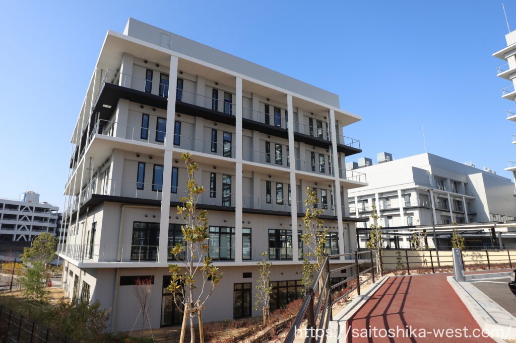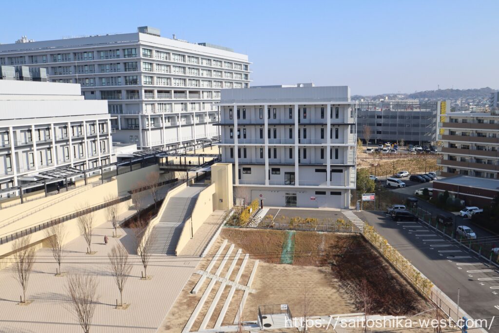 南西側から見た様子です。「新キャンパス」と呼ぶにふさわしい規模の大きな施設です。
