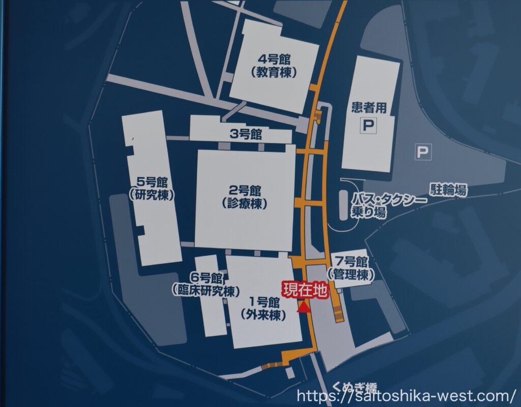 キャンパス内の施設レイアウトはこんな感じです。順番に見ていきます。