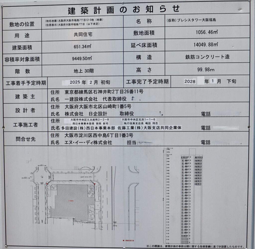 計画名称:(仮称)プレシスタワー大阪福島