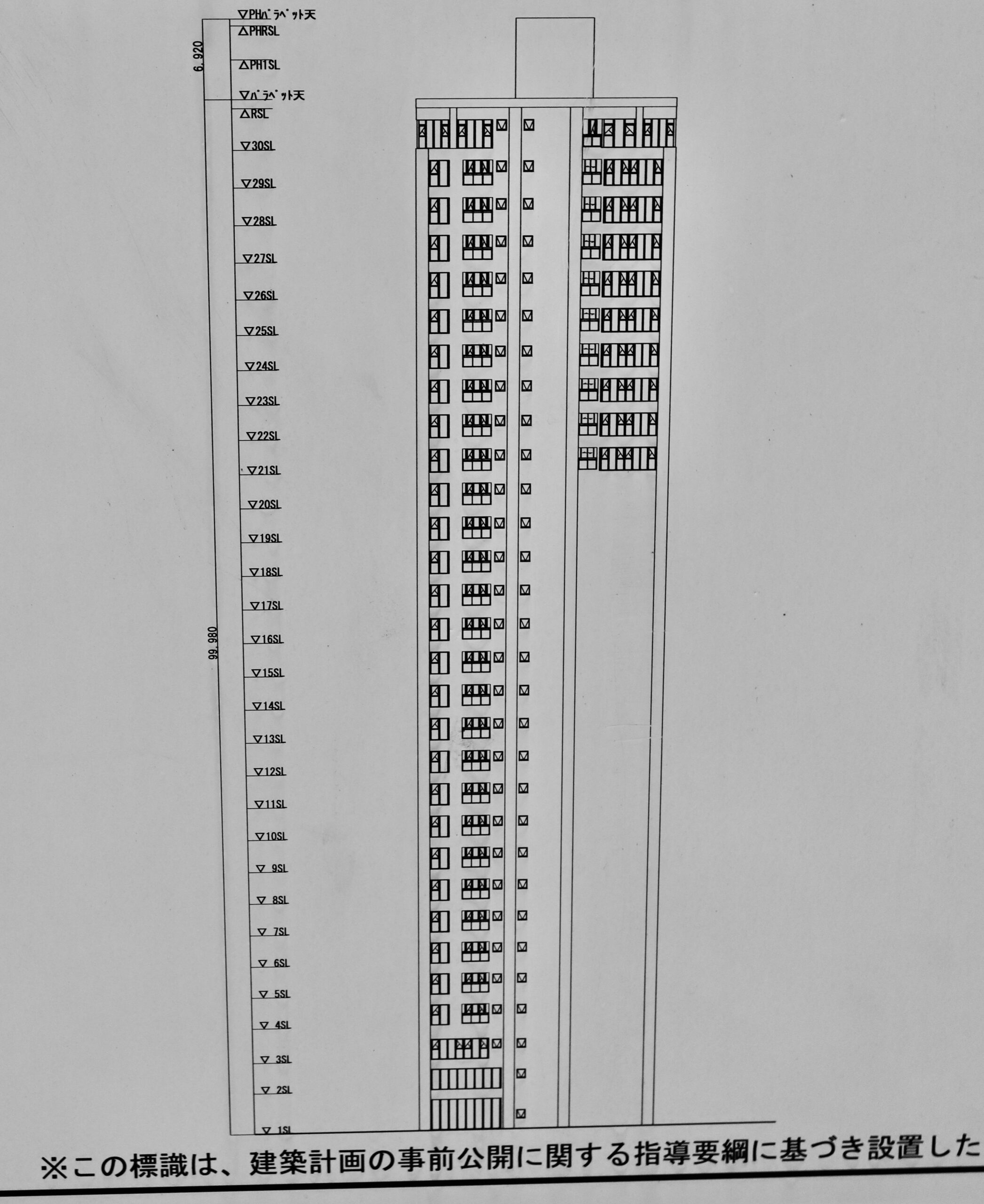 建築計画のお知らせに掲載されていた立面図です。