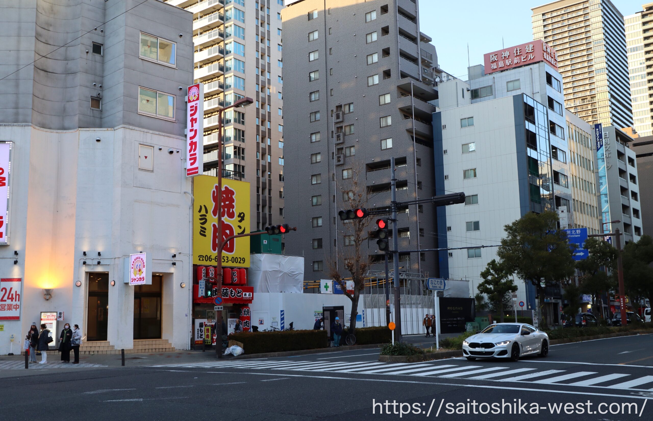 北東側から見た様子です。計画名称は「(仮称)プレシスタワー大阪福島」でしたが、物件名は「レグナスタワー新梅田」に決まりました。以前からこの計画をウォッチしている人にとっては、少しややこしいかもしれませんね(笑)。