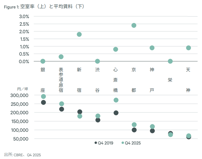 注目すべき点は、2025年11月に始まった中国政府による渡航自粛要請があったにもかかわらず、CBREがリーシングマーケットへの影響を「限定的」と評価している点です。