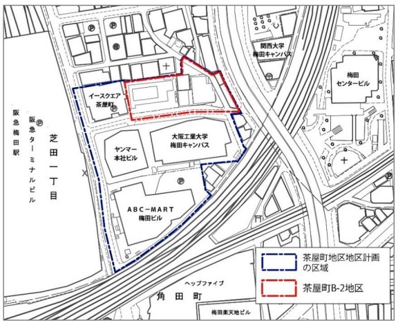 計画地は阪急大阪梅田駅北東側、茶屋町の一角