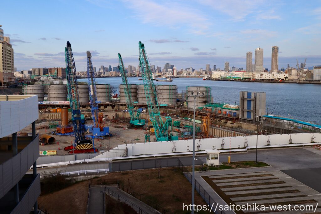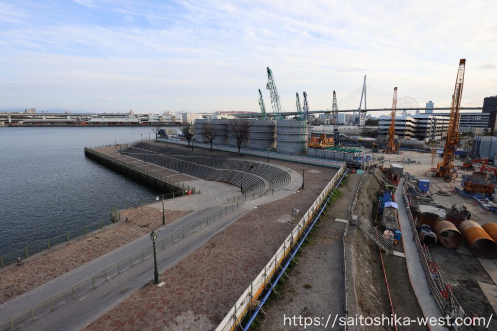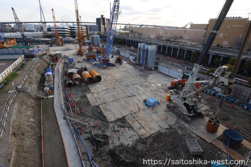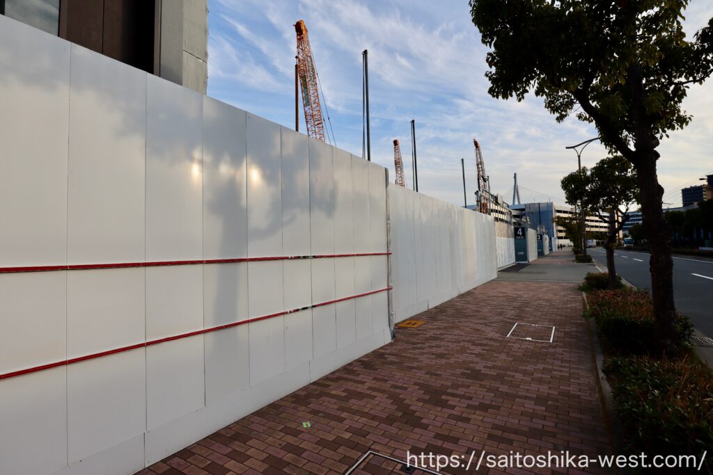 最後は、敷地西側から見た現地の様子です。『(仮称)OSAKA SAKURAJIMA RESORT新築工事』は、大阪都心部から離れたエリアにおける最大級の再開発プロジェクトであり、USJ初の外資系オフィシャルホテルでもあることから、開業後の波及効果にも期待が高まります。