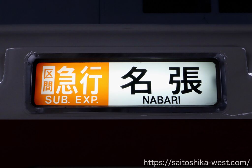 区間急行の種別幕。