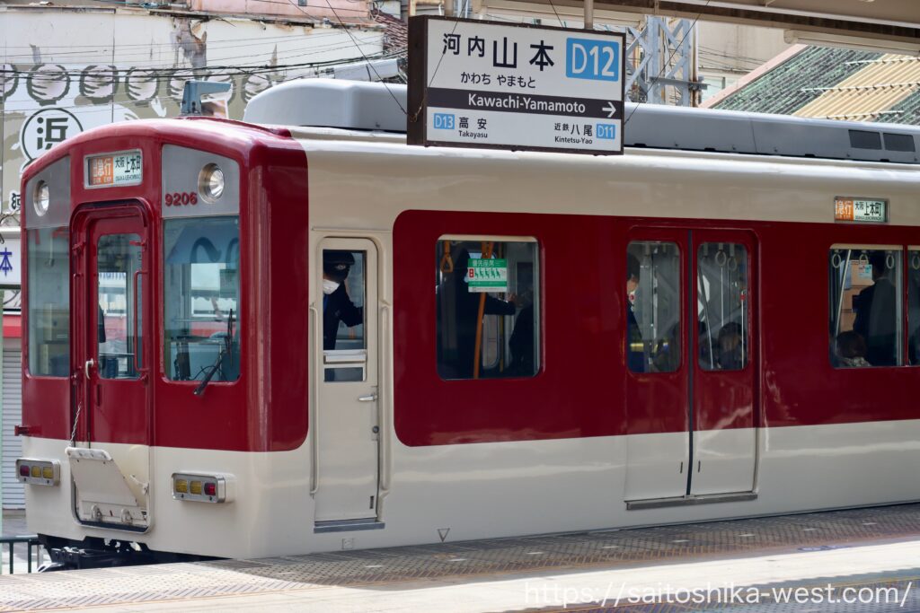 まず、上本町駅から河内山本駅まで移動しました。従来の急行は布施駅を出ると河内国分駅まで一気に走り抜けていたため、近鉄八尾駅、河内山本駅と連続で停車するのは、けっこうな違和感。一方で、区間急行と準急の利用者が集約されることから、乗車率は高めでした。