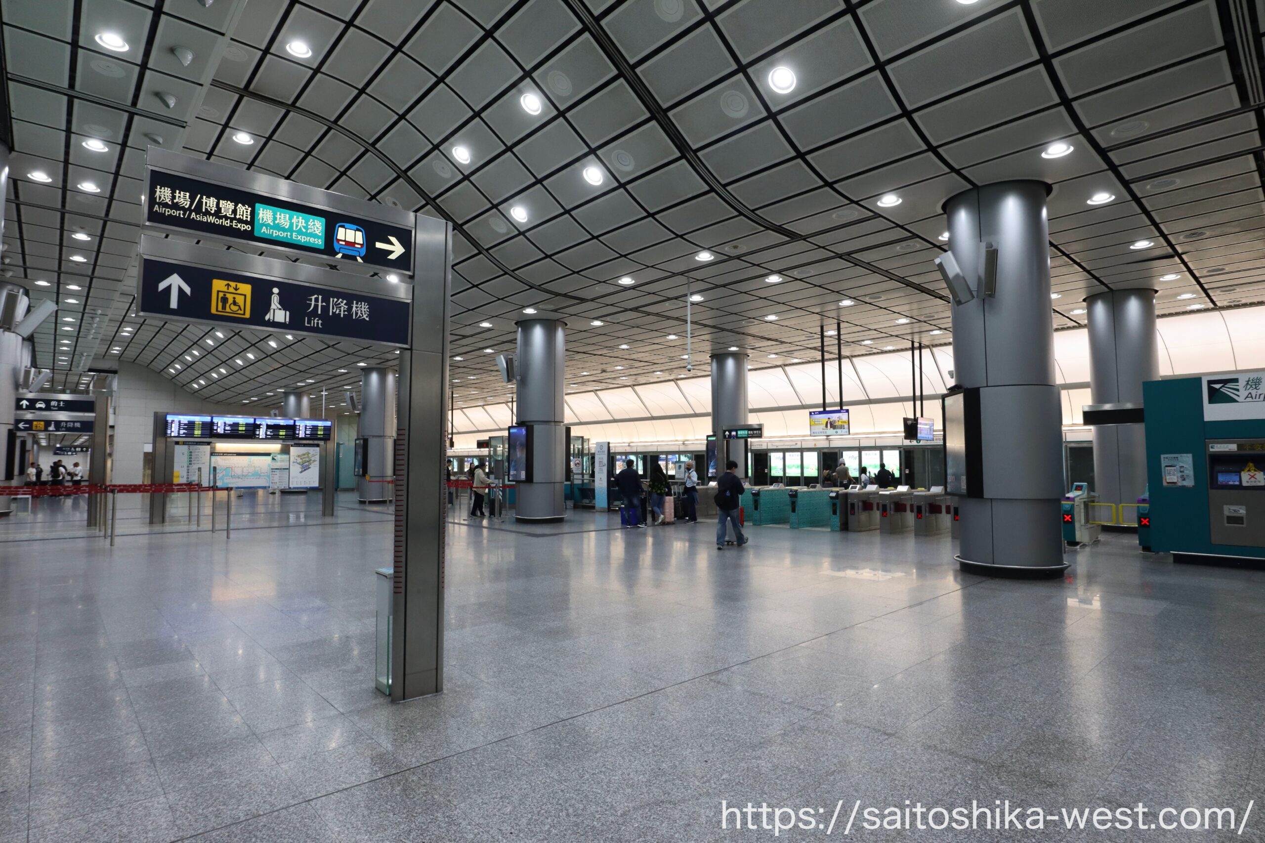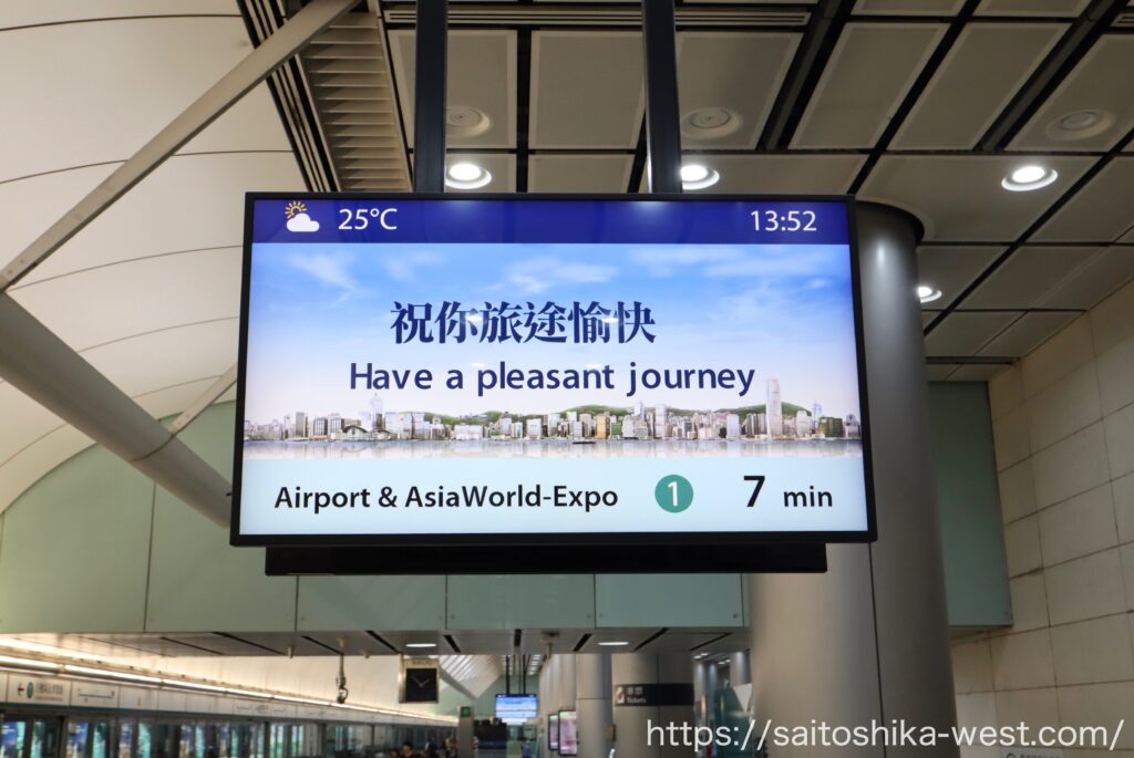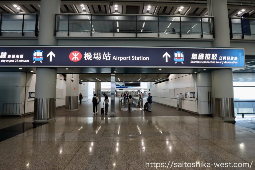 まず印象に残ったのは、空港駅までの導線のわかりやすさです。香港国際空港は規模の大きい空港ですが、エアポート・エクスプレスへの接続は整理されており、案内表示に従って進めば初めてでも迷いにくい構成です。