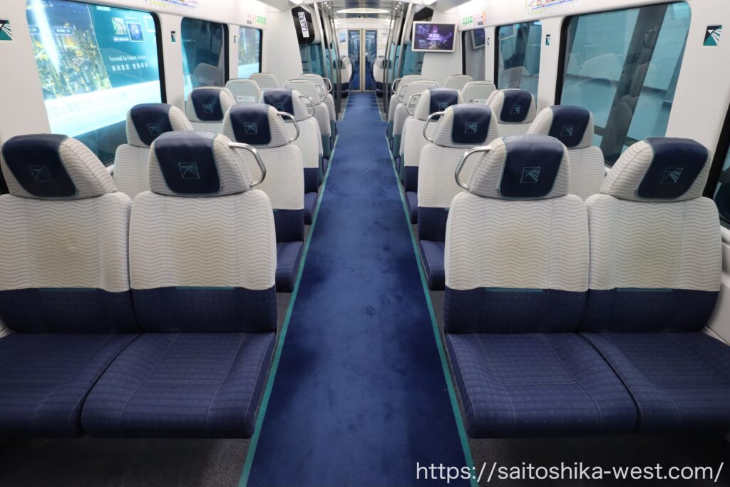 乗車後は、さらに完成度の高さが見えてきます。発車後の加速は鋭く、車内は静かで、都心までの移動が非常にスムーズです。数字としての24分も十分速いですが、実際の体感はそれ以上に短い。待ち時間、導線、車内環境まで含めて移動全体のノイズが少ないため、ストレスなく都心へ入っていけます。
