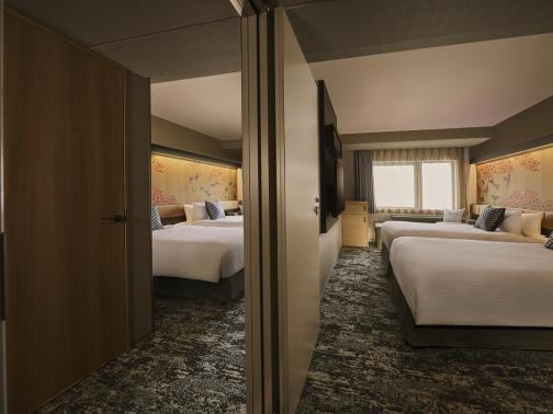 客室は、2〜4人で利用しやすいツイン・キングルームを中心に構成し、最大7人まで宿泊できるコネクティングルームも24室用意されます。若年層のグループ旅行や家族旅行、訪日客の複数名利用を意識した設計です。加えて、防虫仕様の寝具や厚みのある特製マットレスなど、快適性にも配慮しています。