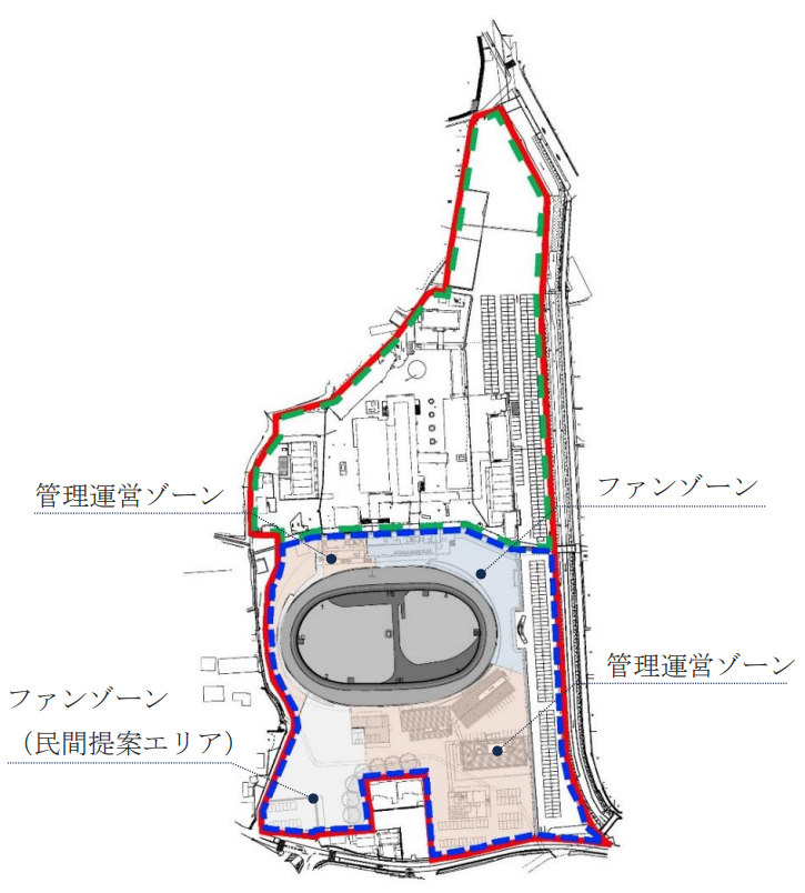 整備上限額は約105億円。対象となるのは主に南側約3.7haで、新スタンド3300㎡程度、女子選手宿舎900㎡程度、管理センター約1800㎡の改修、バンク全面改修などが計画されています。加えて、地域住民や子どもの居場所づくりを意識したファンゾーンの整備も盛り込まれています。